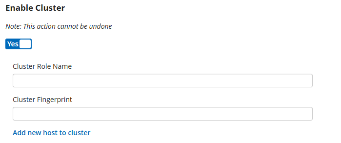 - Click Add new host to cluster and add a cluster node. Repeat as necessary for additional nodes.