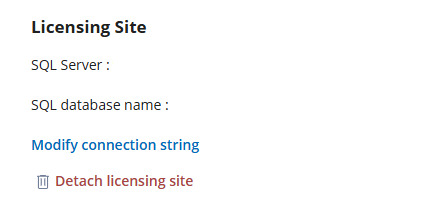Use the Modify connection string option to configure the SQL connection string to your licensing site's SQL Server database.