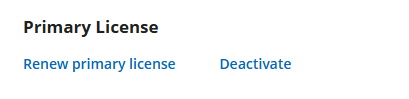Use the Renew primary license link and Deactivate link to manage the primary license associated with the licensing site.