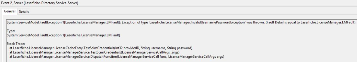 - If the Basic Authentication credentials are changed in Directory Server, but not in Okta, then the event description will look like this:
