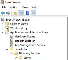 To view the event logs for Laserfiche Directory Server, navigate to the Event Viewer app on the Windows machine where Laserfiche Directory Server is installed.