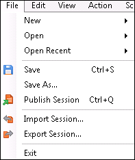 - From the File menu, select Publish Session. Because sessions and document classes can be separate, you will have the option to publish the session or its document classes individually.
