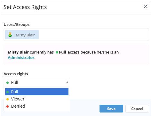 Note: By default, every user is granted the Viewer access right.