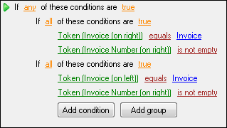- Multi-value tokens on the right side of a condition are treated the same as they are in most other text boxes in Quick Fields; the first value of the token will be used unless an index is specified.
