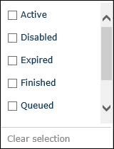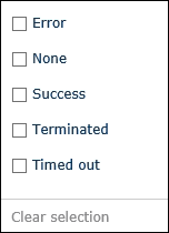 You can add one or more filters per each column. To clear a column's filters, select Clear selection at the bottom of the specific column's filter list. To clear all filters across all columns, click Clear filters above the columns on the right.