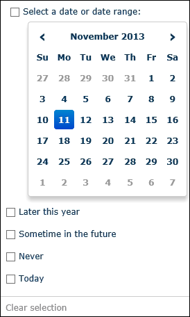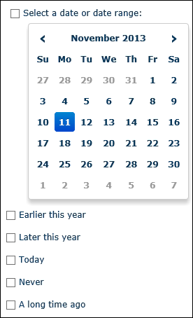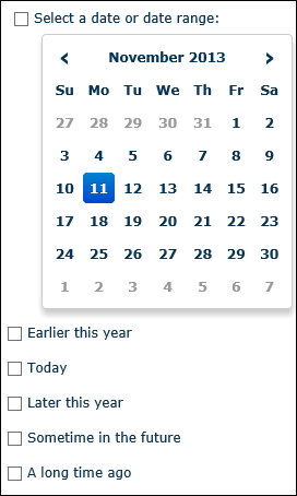 - To select a specific date, click it on the calendar. To select a date range, today's date has to be one end of the range. Hold CTRL and click a date for the other end of the date range.