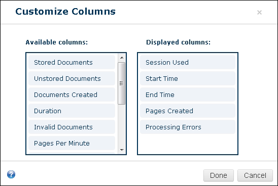 - Select and drag a column from the Available columns list to the Displayed columns list to display it.