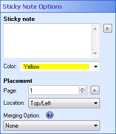- Next to Page, configure which page the sticky note will be added to by typing a number, using the scroll box (up-and-down arrows)