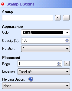 - Page: Configure which page the stamp will be added to by typing a number, using the scroll box (up-and-down arrows)
