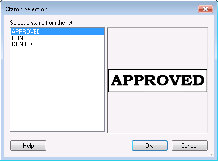 Note: If no stamps appear in this dialog box, there are no public stamps in your repository. See the Client online help files for information about adding public image or text stamps to your repository.