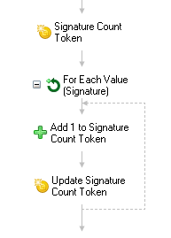 Example: For an upcoming meeting you want to know how many people added their signature to a multi-value Approver field on the agenda. You use the Assign Token Values activity to create a custom token, Signature Count, with a value of zero. You then add a For Each Value activity that goes over each signature in the Approver field. Inside the For Each Value activity, you place a Token Calculator activity configured to add 1 to the Signature Count token for each value found in the Approver field. Also inside the For Each Value activity is an Assign Token Values activity that updates the Signature Count token with the value of the Token Calculator token. The resulting Signature Count token tells you how many people signed the agenda.
