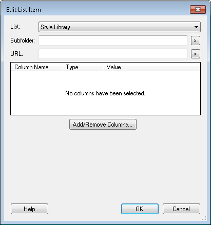 to use tokens to specify a subfolder. If you do not specify a subfolder, the item will be added to the main list. - Optional: If the list you selected is a document library, type a URL (such as a Web Access URL) next to URL. Click the Token button (right arrow)