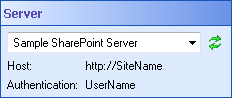 - Under Server in the Properties Pane, select a SharePoint® server from the drop-down menu.