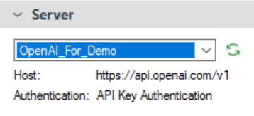 The Server property box specifies which web service endpoint to use for the custom AI task.