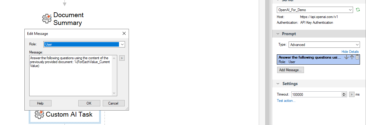 | ConversationID | The conversation ID of AI conversation. | %(CustomAITask_Conversation ID) |