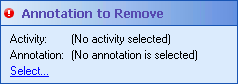 Select Annotation dialog box, expand the activity that added the annotation you want to delete. - Click the green arrow