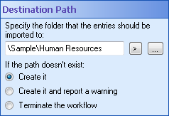- Create it and report a warning: Creates a new folder path, and displays a warning in the Search Results Pane and workflow instance details' Message Tab, when you search for the specific workflow instance.