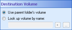 Destination Volume in the Properties Pane, select which volume the entries will be copied into. - Select Use parent folder's volume to copy the entries into the volume of the folder specified under Destination Path in the Properties Pane.