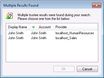 Multiple Results Found dialog box opens. In this dialog box, choose the trustee you want to send the e-mail to and click OK.