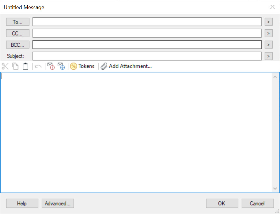 - Click To, CC, or BCC to assign the selected recipient to the e-mail. Click the Token button (right arrow)