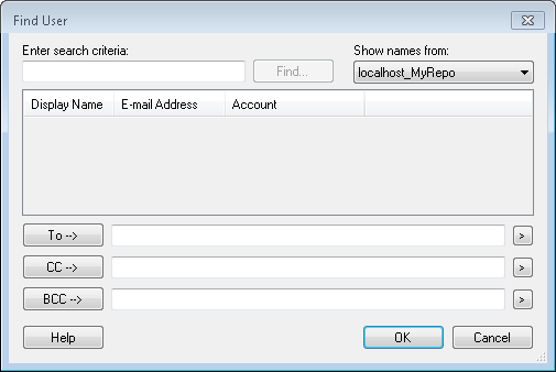 to use tokens, or by selecting To, CC, and/or BCC. Selecting any of these buttons opens the Find User dialog box which allows you to search for a user. - Click the high priority