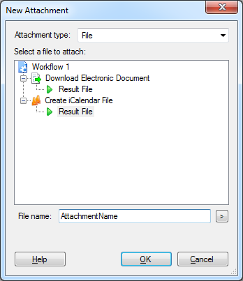 Next to Attachment type, choose between attaching a Laserfiche entry in the workflow or the resulting file from a Create iCalendar File activity or Download Electronic Document activity.