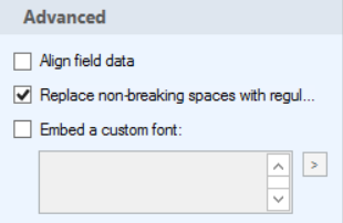 - Replace non-breaking spaces with regular spaces: If the tokens inserted in the PDF form use non-breaking spaces (Unicode character 00A0), the spaces may not be displayed when the PDF is viewed. Select this option if your tokens contain non-breaking spaces to convert them to regular spaces (Unicode character 0020).