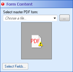 Note: If the master PDF form you want is not in the drop-down list, you will need to attach the PDF to the Workflow Server. After you attach the desired master PDF to the Workflow Server, the PDF will appear in the drop-down list.