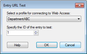 Entry URL Test dialog box, select the Connection Profile of the repository that will contain the entry this activity will access. - Specify the Entry ID number of an entry in the repository selected in the Starting URL Test dialog box.