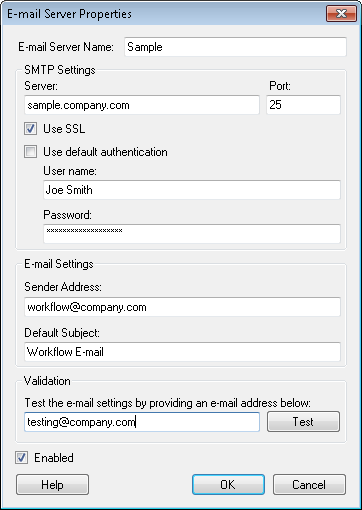 4. Optional: Select Use SSL if you want to secure the connection between the Workflow Server and e-mail server.