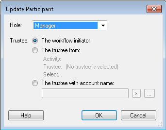 Note: The trustee specified will replace any trustees that are currently assigned to the role for this Business Process Activity.