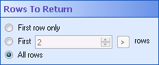 - First ___ rows: Returns the first specified number of rows that contain the queried value. Type in the desired number of rows, or use the scroll box (up-and-down arrows)