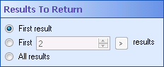 - First ___ results: Returns the first specified number of results that the Search Repository activity finds. Type in the desired number of results, or use the scroll box (up-and-down arrows)