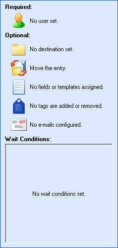 - Under Routing Options in the Properties Pane, click any of the setting's icons to open the Routing Activity Options dialog box. This box consists of seven tabs: