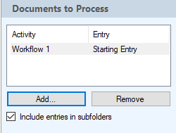 - Select the Include entries in subfolders check box to process the contents of any folders specified in the Documents to Process property box. Note that this will process the contents of the folder's subfolders, all the way down the folder tree.