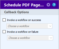 Callbacks allow the activity to start a workflow for either additional processing once the PDF page has been generated, or to handle information on files that were unable to be processed.