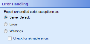 - Server Default: Use the Workflow Server default setting set in the Scripting Options dialog box in the Workflow Administration Console.