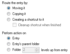 defined in the activity's Action tab. (If you chose to move the input entry, the routed entry is the same as the input entry.) - Routing Folder: The wait conditions must be met for the folder the routed entry is inside.