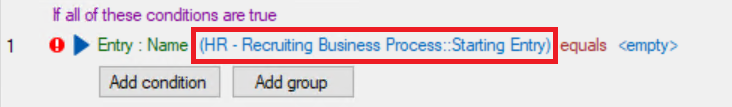 For some decision conditions, you must define the entry the condition refers to.