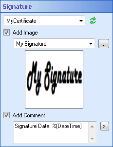 Signature in the Properties Pane, select a certificate from drop-down menu. Click the refresh symbol