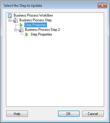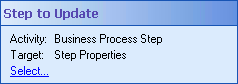 Select the Step to Update dialog box. - Expand the Business Process Step activity that contains the participant, instructions, or due date you want to update, select Step Properties, and click OK.