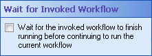 Wait for Invoked Workflow in the Properties Pane, select if you want this workflow wait for the workflow specified in the Workflow property box to finish before the invoking workflow continues. If you clear this option, the workflow and the invoked workflow will run in parallel and you will not be able to access any of the invoked workflow's output parameters.