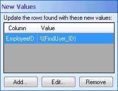 - Optional: You can add additional columns and values, modify values, or remove columns and values in the New Values property box.