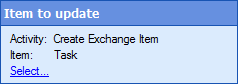 Item to update property box you can choose which Exchange item you want to update with the activity. You can only update Exchange items that were created by a Create Exchange Item activity earlier in the workflow definition. To update an item
