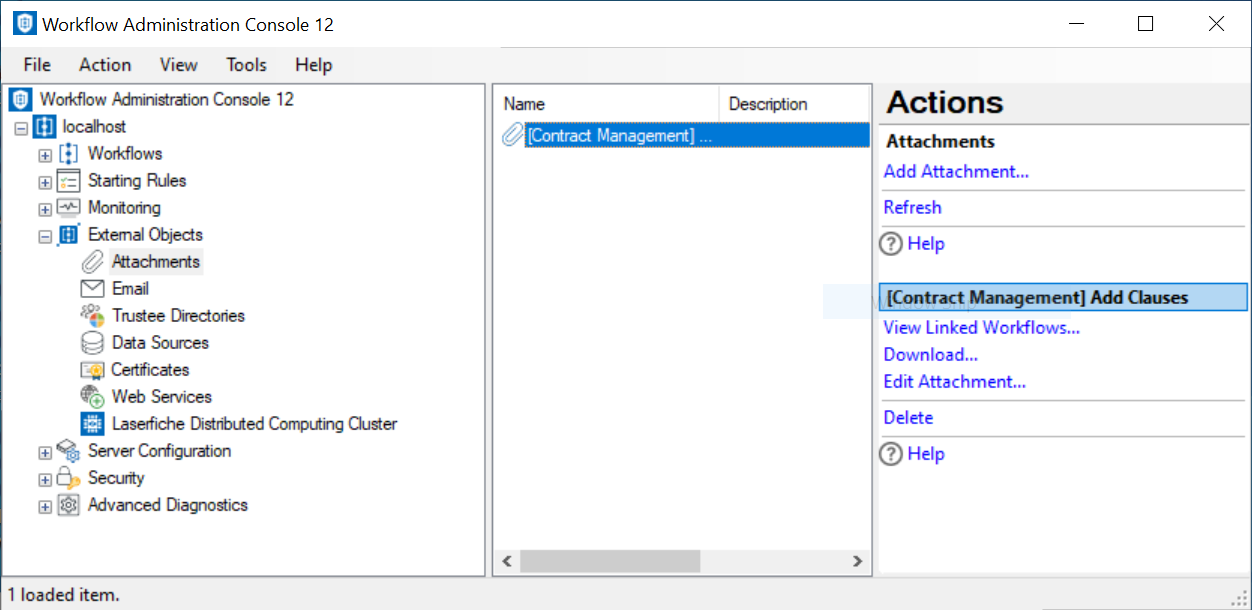 - Select Attachments. The node will list all the attachments on the Workflow Server.