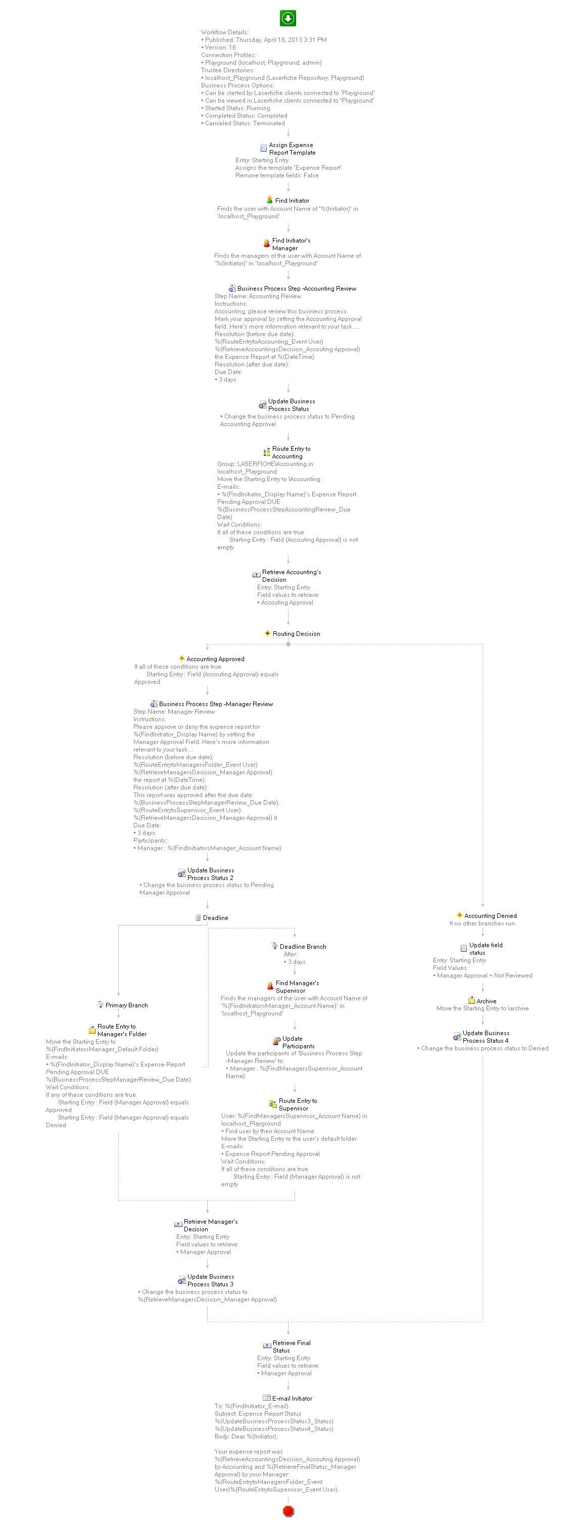Furthermore, business processes may contain business process activities. Business process activities allow you to customize business process reporting in Workflow, SQL, and in the Laserfiche client applications so that you can quickly and easily see the information that is most important to your business process. The specificity in business process reporting lets you see information such as: current instance name, status updates, participants, step instructions, and the duration of each step in your business process. Learn more about business process reporting.