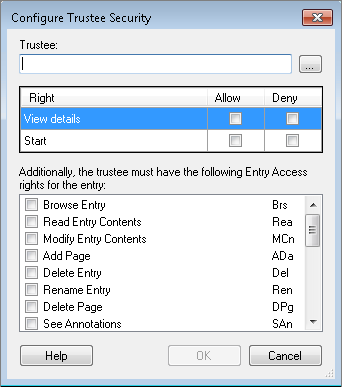 - Select the Entry Access Rights that a trustee must be granted on an entry before being able to view its business process's details and/or start the business process on that entry.