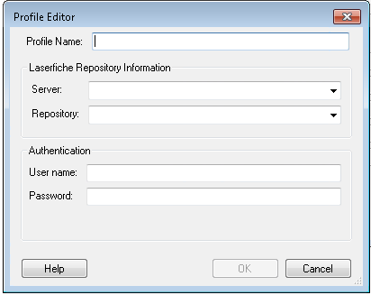 - In the Profile Editor, make any desired changes to the Profile Name, Laserfiche Server, Repository, or user name and password.