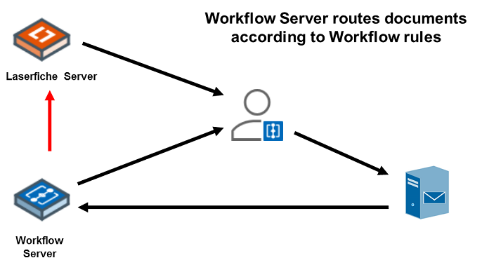 - Workflow Server: The component that runs workflows. The Workflow Server receives notification from the Workflow Subscriber when a change is made to a Laserfiche entry that satisfies a starting rule or wait condition. See Choosing a Workflow Server.
