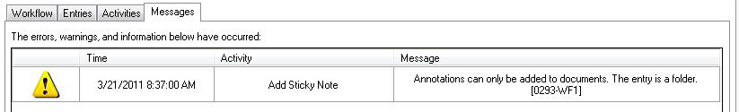 Messages tab shows errors, warnings, or informational messages that were encountered. More information.